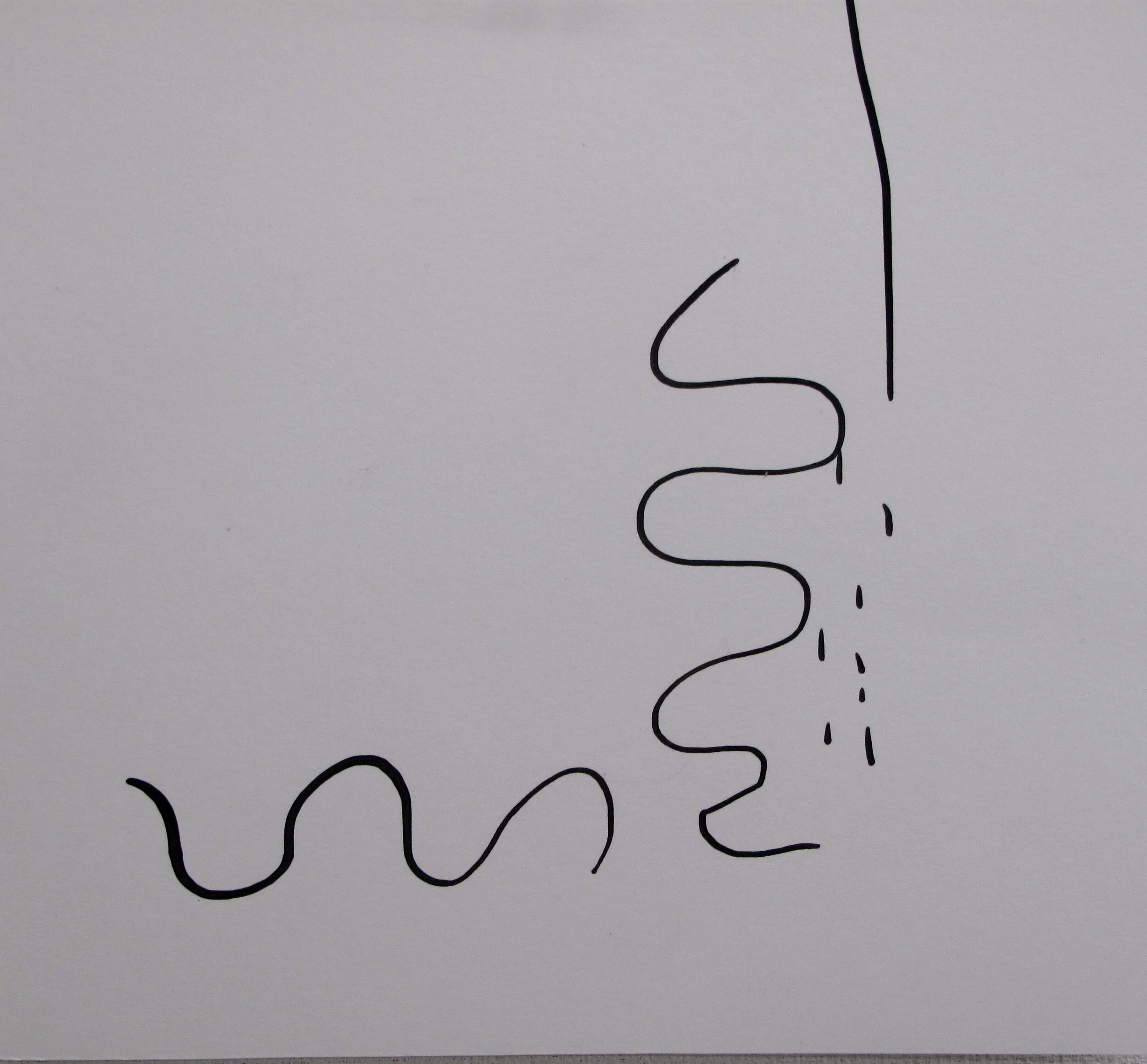 Press your drawing tool against the mesh of the screen to draw. It will push the ink out onto the paper below. Be careful, if you lay your hand down as you draw it will press the ink onto your paper in that area. The action can be a bit awkward at first. As you get closer to the frame of the screen, you may find that you need to use more pressure to span the gap between the mesh and the paper. But don’t get too aggressive, it’s not hard to puncture the mesh of the screen.